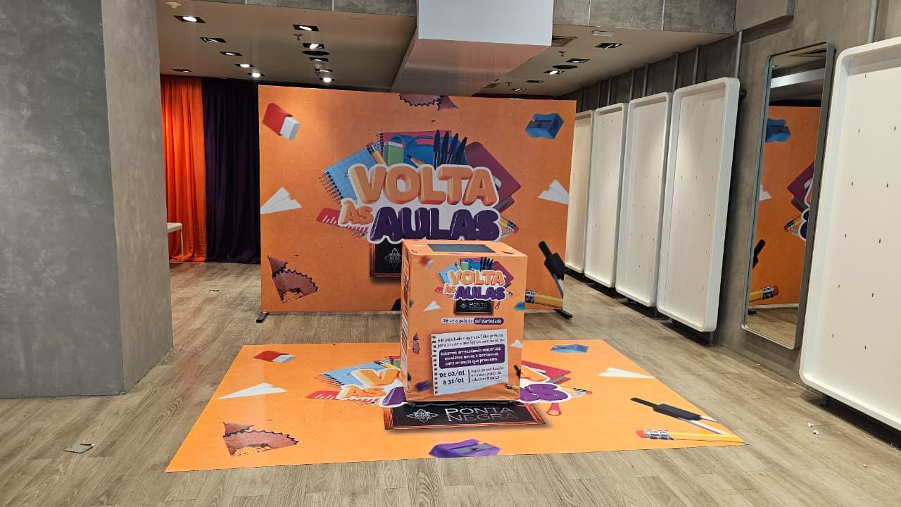 Shopping Ponta Negra, na zona Oeste de Manaus, inciou uma campanha de arrecadação de materiais escolares desde terça-feira (6). Eles estão convidando todos os clientes que forem ao shopping fazer compras no início do ano a “darem uma aula de solidariedade”, doando itens novos ou seminovos que estejam em bom estado.