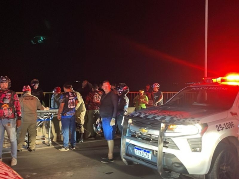 Seis pessoas ficam gravemente feridas após colisão entre motociclistas e carro quebrado na Ponte Rio Negro